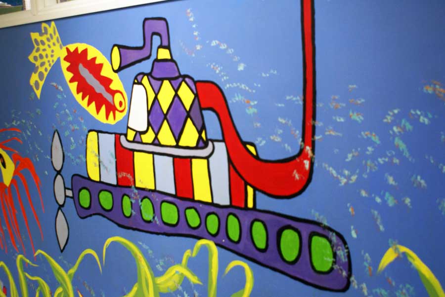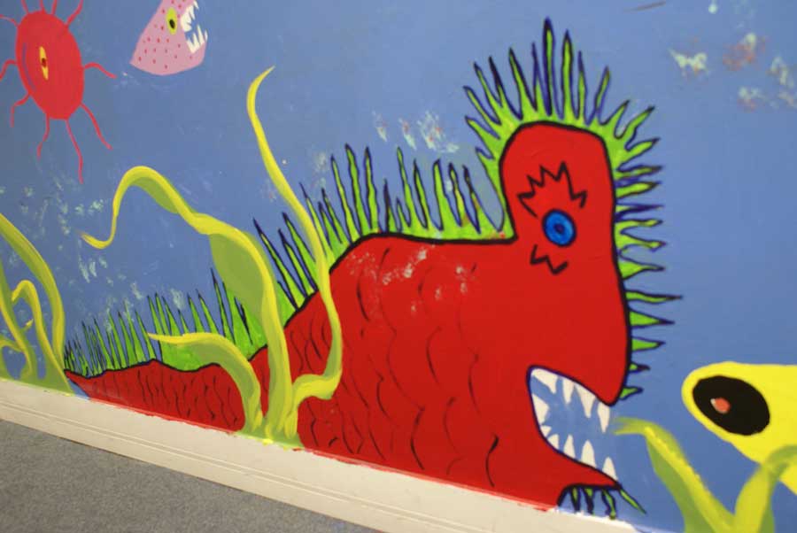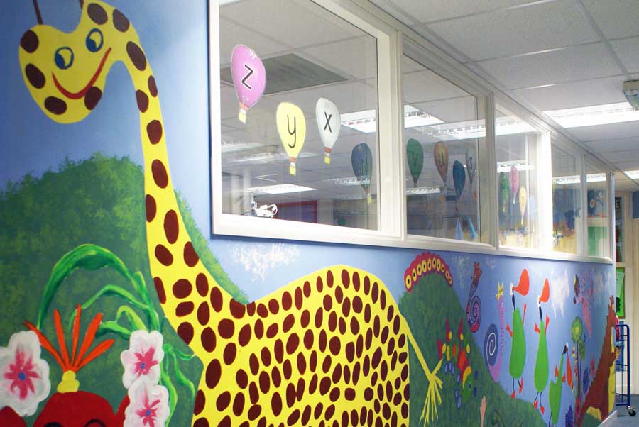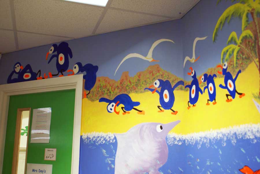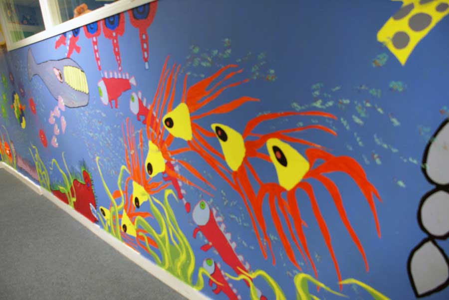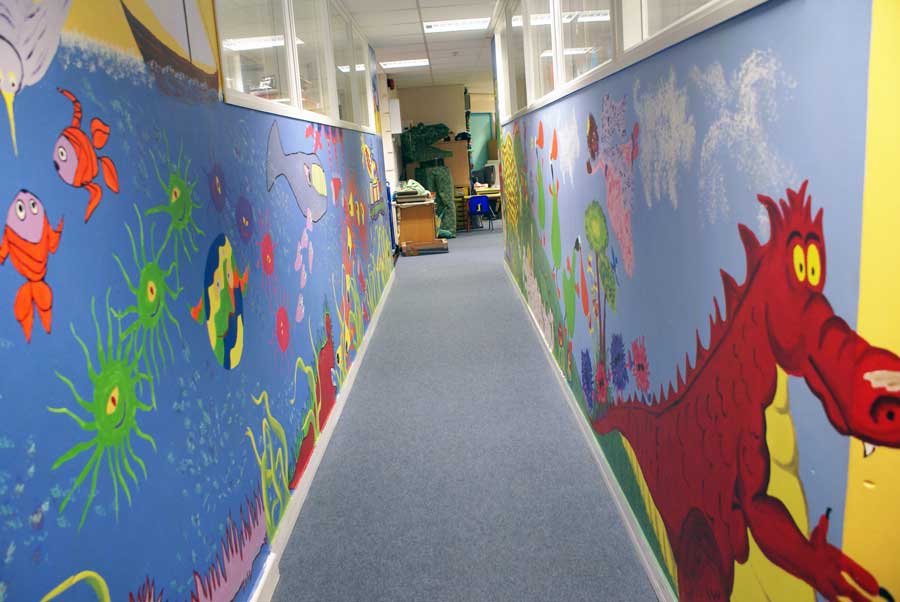 Children from Reception to Year 2 chose the themes of seaside and countryside to design murals for their classroom corridor.